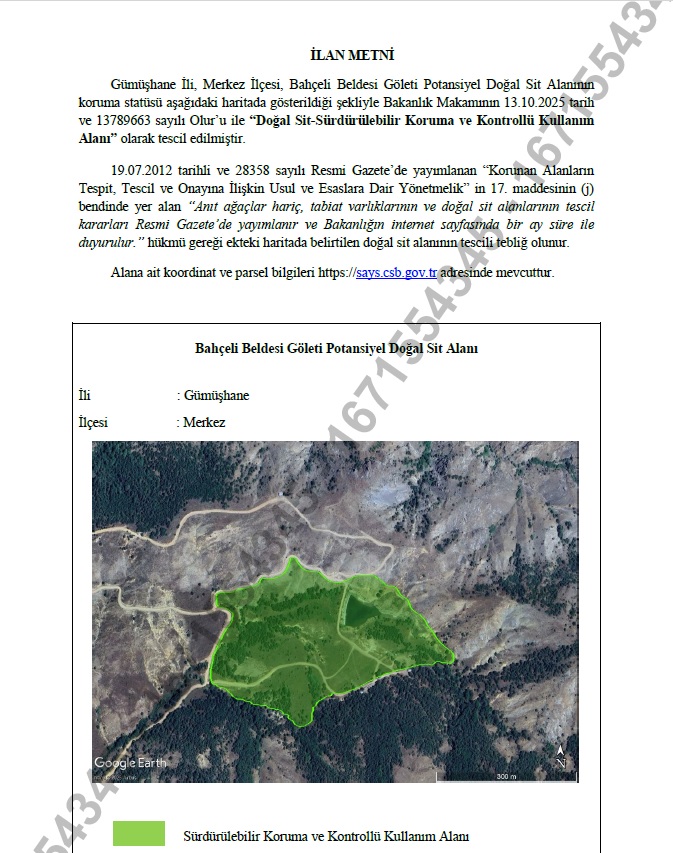 Bahçeli Beldesi Bahçeli Göleti Doğal Sit Alanı Tescili