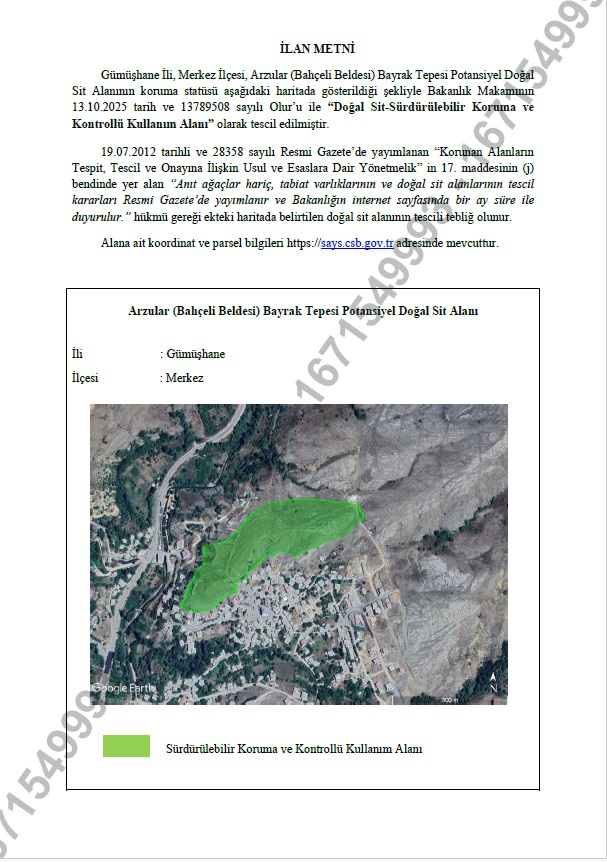 Bahçeli Beldesi Bayrak Tepesi Doğal Sit Alanı Tescili