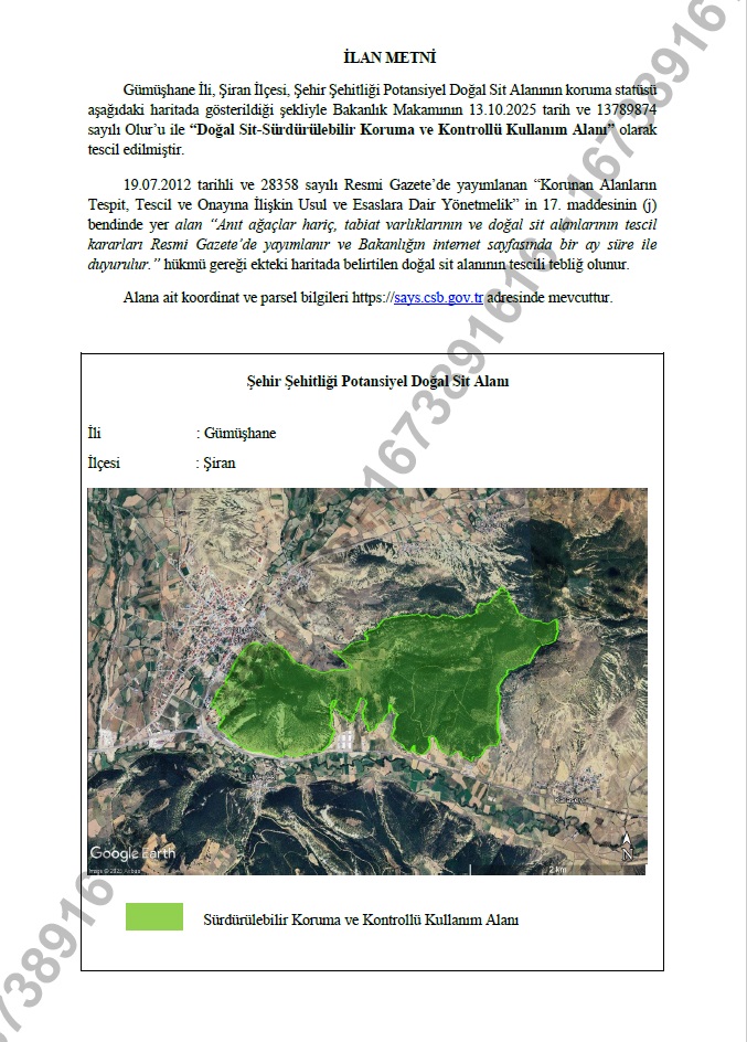 Şiran İlçesi Şehir Şehitliği Doğal Sit Alanı Tescili