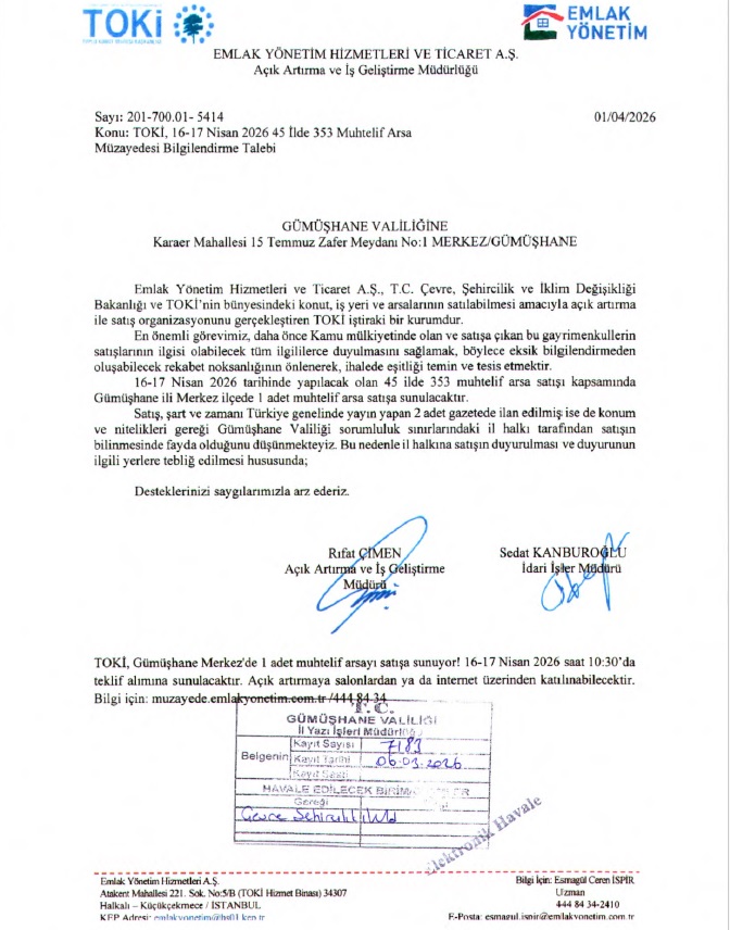 TOKİ, 16-17 Nisan 2026 45 İlde Muhtelif Arsa Müzayedesi Bilgilendirmeendirme